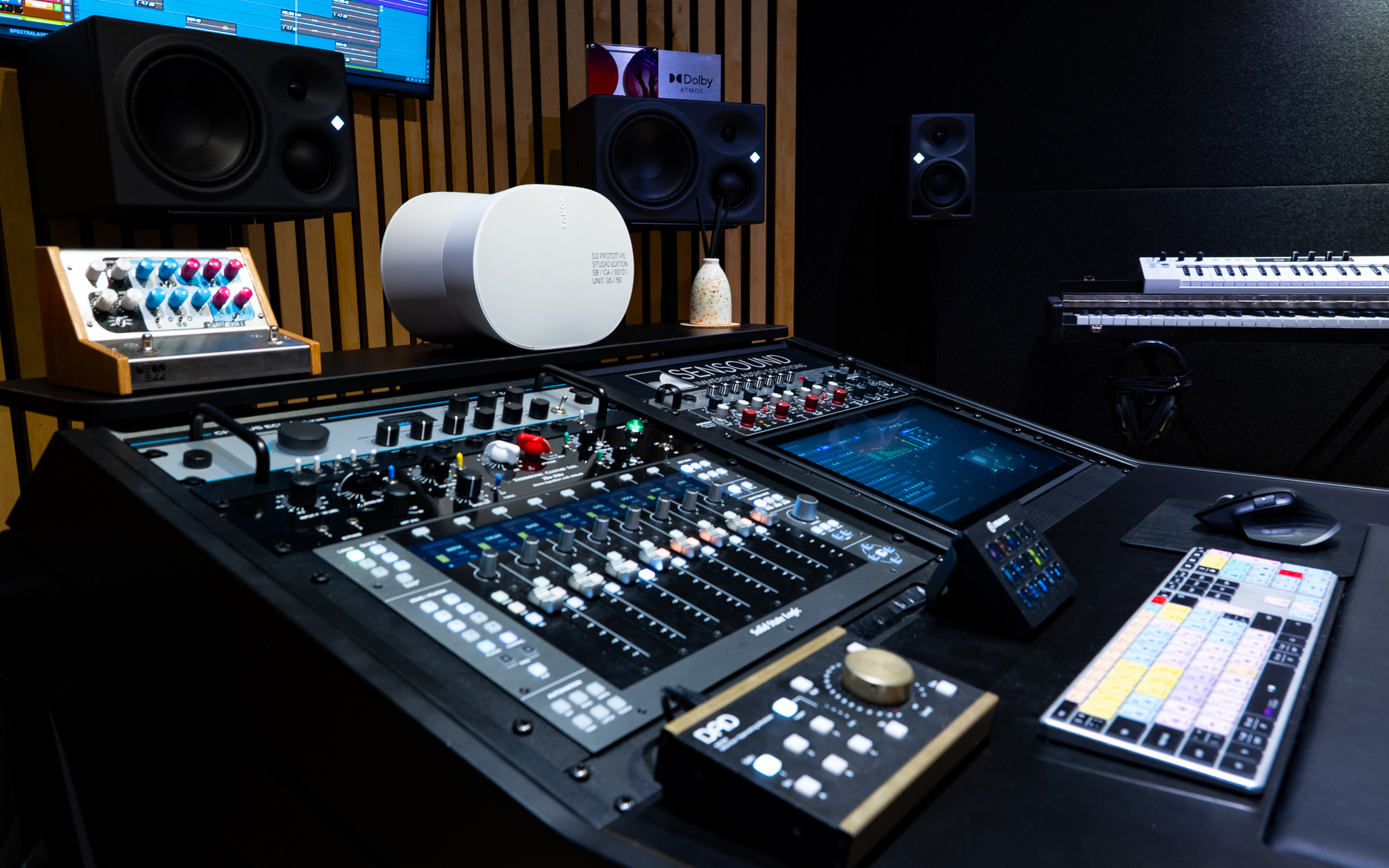 Mark Gittins’ Atmos mix room at Sensound sports a Neumann KH series 9.1.4 speaker setup.